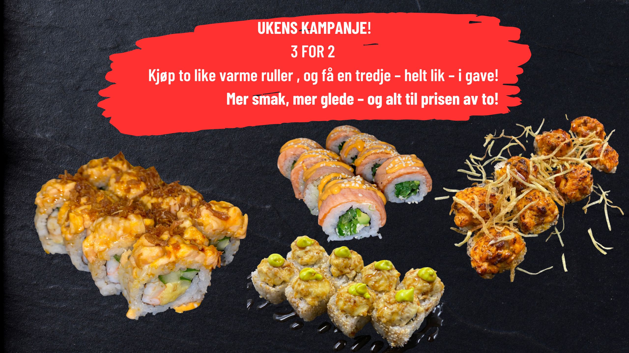 California med surimi, California med tunfisk, California med fritert torsk og Green Dragon – perfekt for en stor gruppe!