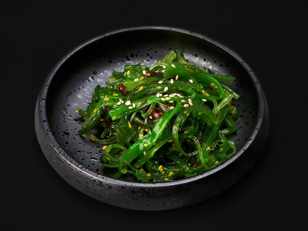 Stekte grønnsaker: squash, gulrot, paprika Toppet med sjøgressalat