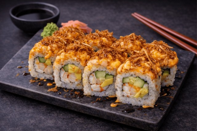 Yokohama En bakt rull med fritert scampi, søt omelett og avokado. På toppen: hakket laks med spicy saus, drysset med karamellisert løk. PrisNOK205,00 inkl. mva. På lager Antall Kjøp Ønskeliste Del dette Produktinfo Produktanmeldelser (0) Allergener Fisk Skalldyr Bløtdyr Soyabønner laktose Sesamfrø Egg Lupin Gluten Hvis du har spørsmål om allergener, eller ønsker at vi lager maten uten visse ingredienser – ta kontakt med oss, så ordner vi det! Skriv en produktanmeldelse og del dine erfaringer med dette produktet med andre kunder. Email Navn Din vurdering? 1 star 2 star 3 star 4 star 5 star 6 star Oppgi en tittel for anmeldelsen din Skriv inn produktanmeldelsen i feltet under