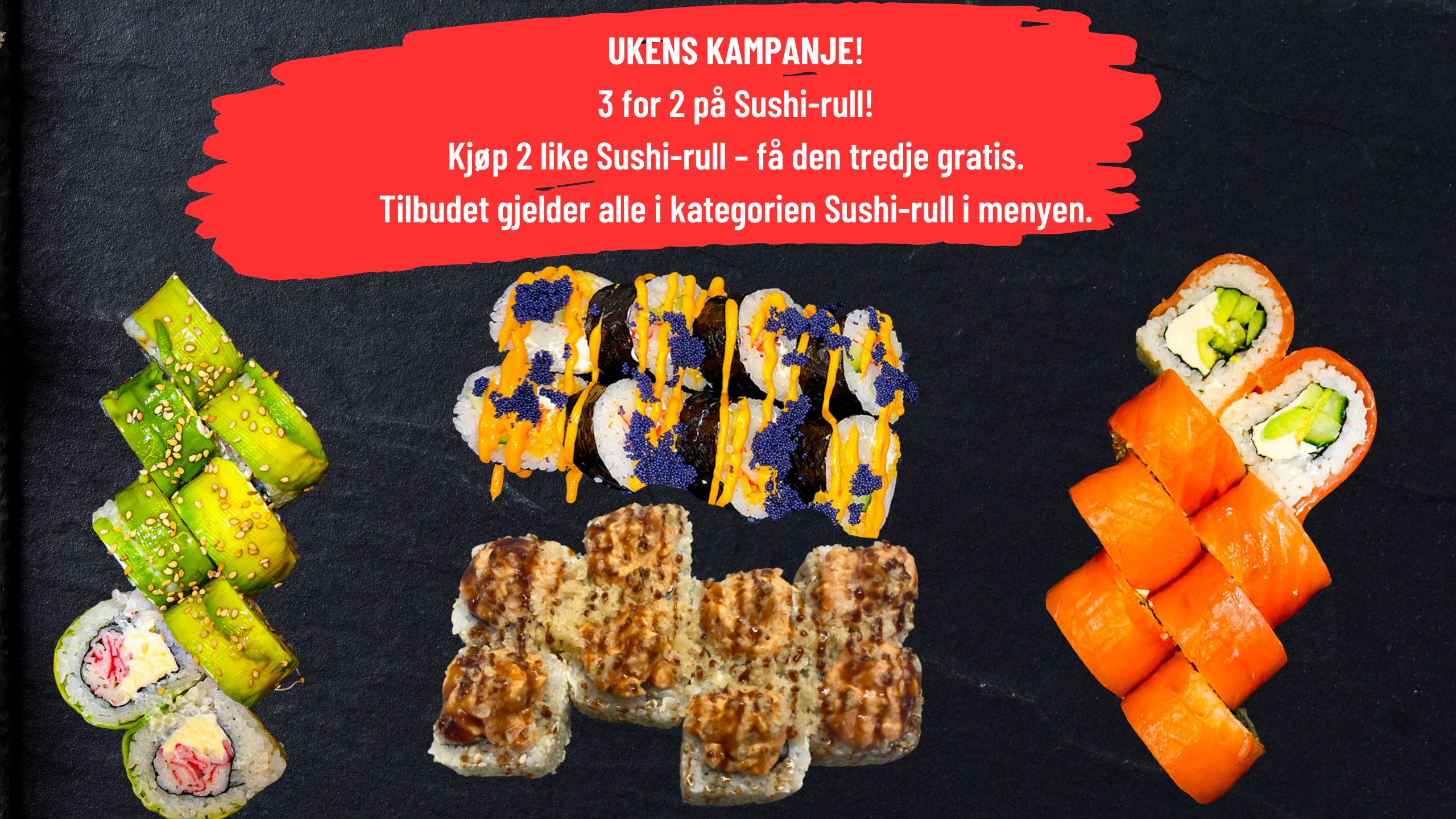 18 biter sushi med surimi – Grønn Drage, California Surimi og Gunkan med Spicy Surimi.