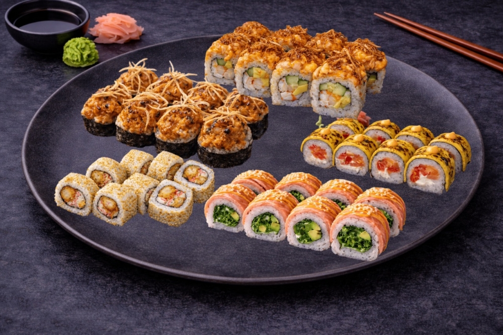 Yokohama rull 8 biter, Kobe rull 8 biter, Cheder rull 8 biter, Kalifornia med tunfisk 8 biter, Samurai rull 8 biter, Kalifornia med laks 8 biter, Fuji rull 8 biter, Grønn drage 8 biter, Fritert rull med surimi 9 biter,